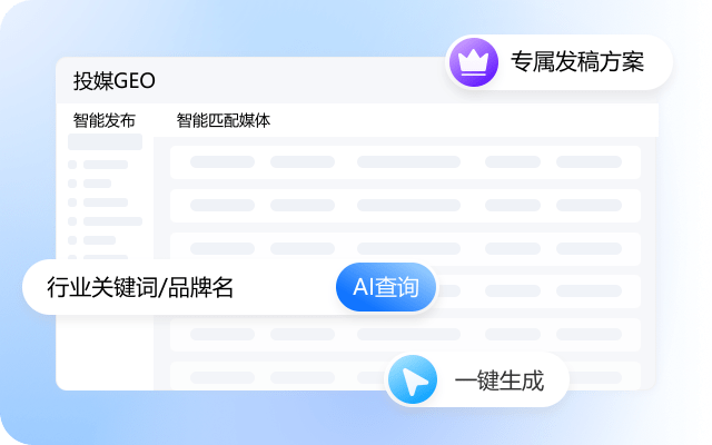 仅需输入行业关键词/品牌名,AI一键生成适配GEO逻辑的专属发稿方案,智能匹配高权重媒体资源